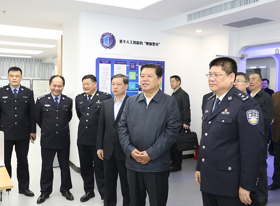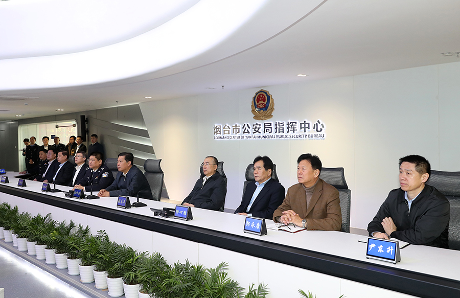 林峰海一行先后到烟台市公安局指挥调度大厅、网络监控中心、智慧警务实验室、执法办案中心等地现场考察,并召开视频调度会,听取工作情况汇报。