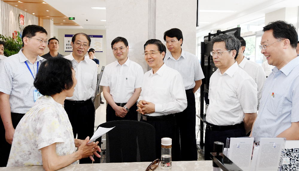 图为6月7日,郭声琨来到镇江市公共法律服务中心向办事群众了解法律服务情况。 摄影 郝帆